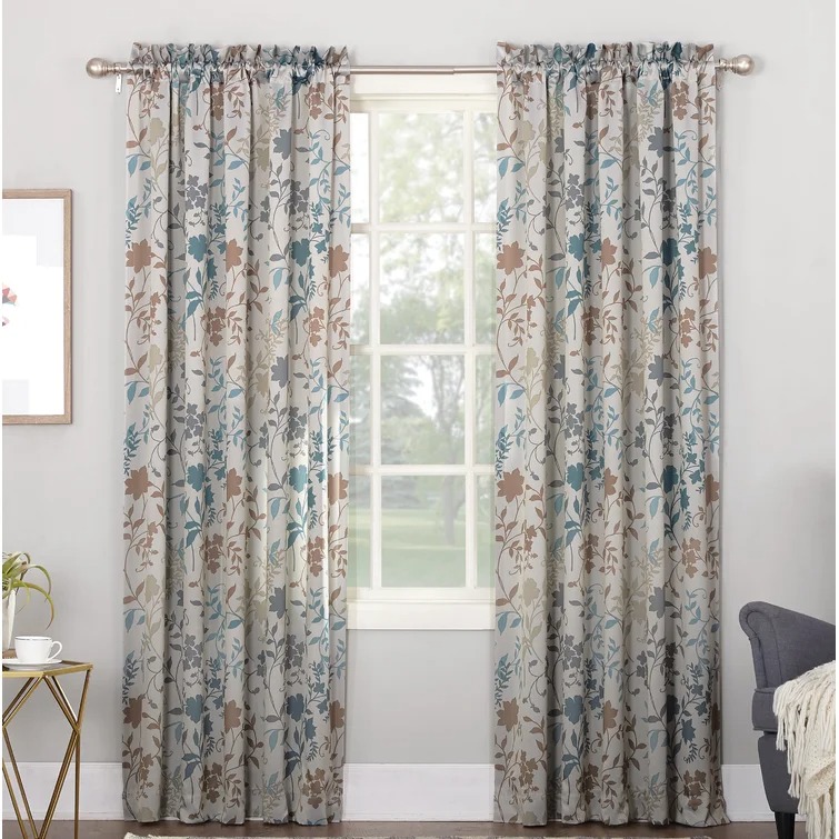 Auburn Floral Print Room Darkening Rod Pocket Curtain Panel -
