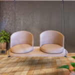 DuoNest is a modern hanging seat with two soft and cozy chairs placed on a wooden base. The smooth beige color and rounded design make it perfect for relaxing indoors. It hangs securely with ropes and adds a stylish touch to living rooms, lounges, or balconies.