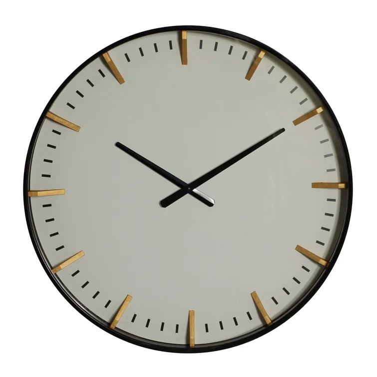 Features a beautiful gold/black finish on the outer border frame and hour markers