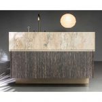 Vincent Van Duysen’s approach for his second collection is solid, based on the presence of building-like compositional forms and on the skillful use of the materials of which he is an undisputed interpreter. Hence Ratio, a modular kitchen where a structure is an undisputed protagonist. Metal grids define the basic architecture, wall units, columns, hoods, and accessories. Full volumes, empty volumes, and tops of different thicknesses are hooked to the slender and minimal techno/structural elements, creating an elegant interplay of balances.