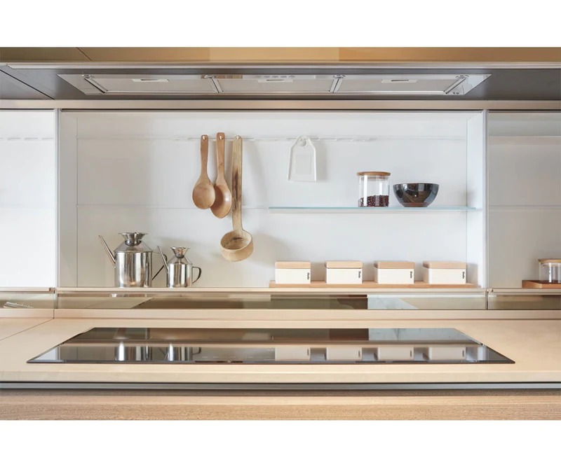 The core of this project is a horizontally folding mechanism that allows the doors to be moved sideways, silently and effortlessly, from their closed position to the side of the compartment. If the side is not free, they can overlap the adjacent compartment leaving it completely accessible, and without occupying the space directly in front of it.