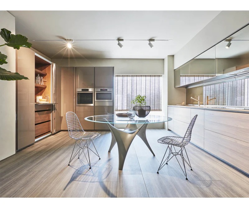 A more rational, flexible way of experiencing the kitchen, making space its main feature, Trim is designed for fast-paced contemporary life that blends technology and functionality. In addition to drawers, doors, and wall units, Trim’s revolutionary new feature is a back panel, accessed by moving sliding glass doors patented by Dada. Featuring LED lighting and electrical sockets, the back panel is the technological heart of Trim.